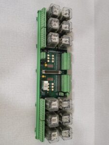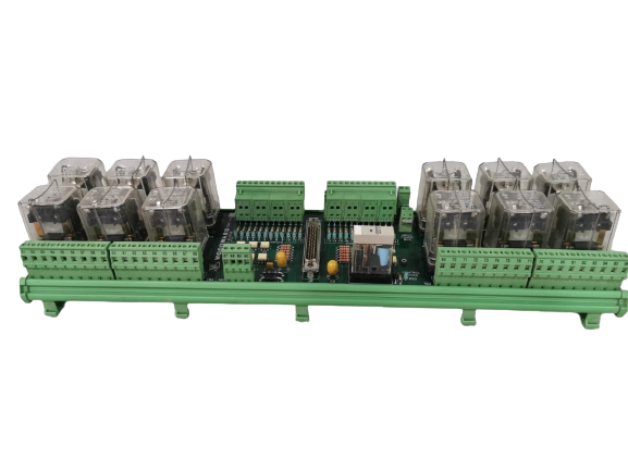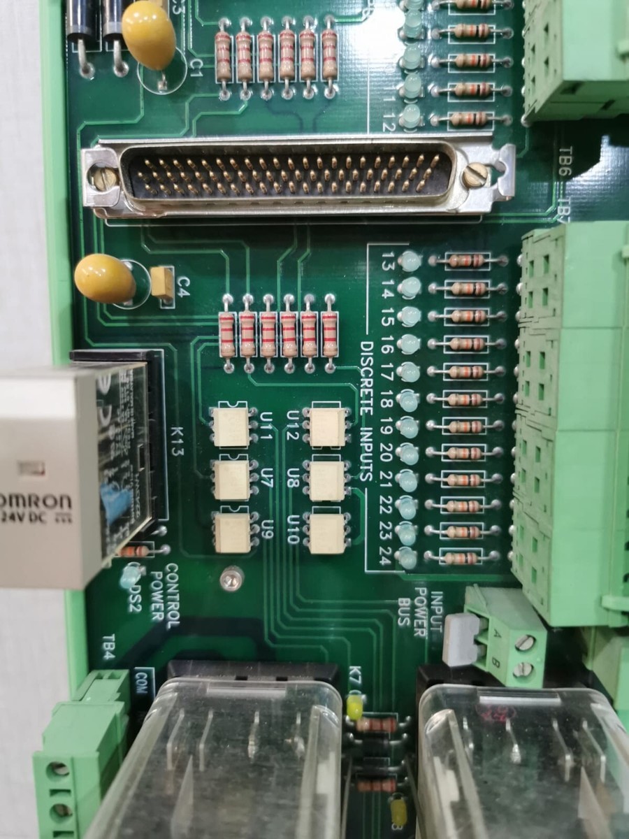 Features:The modules are inserted into card guides in the control's chassis and connected to the motherboard. Two screws, one at the top and one at the bottom of the front panel, hold the modules in place. There are also two handles at the top and bottom of the module that, when toggled (pushed outward), move the modules out just far enough for the boards to disengage the motherboard connectors.The module features a single interface port, which serves as the connection point between the module and the PLC system. Through this interface port, the module can communicate with the PLC and receive control signals or transmit status information.With its 13 relay circuits, it provides the capability to control and monitor various electrical loads or devices. The relays within the module act as switches, enabling the PLC system to turn the circuits on or off based on the control signals received.